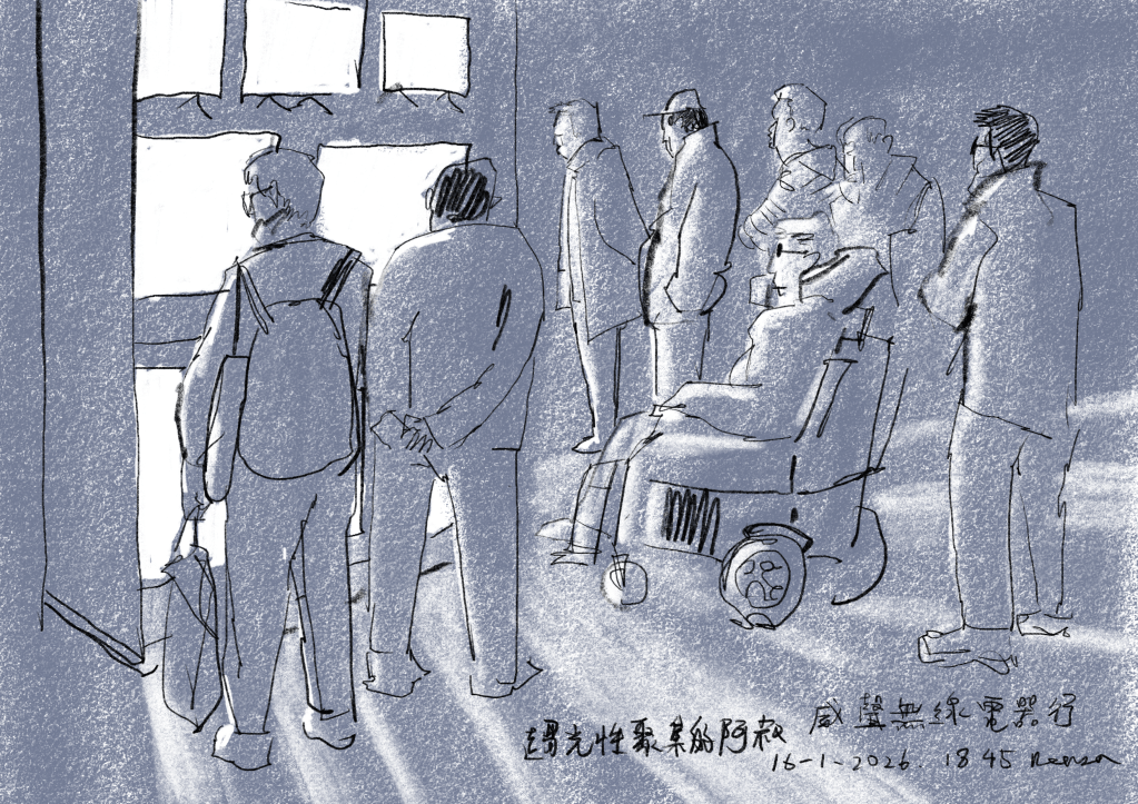 趨光性聚集的阿叔 16-JAN-2026-18-45 發表時間 2026 年 01 月 17 日 by kensahung 分享此文: 分享到 X(在新視窗中開啟) X 分享到 Facebook(在新視窗中開啟) Facebook 喜歡 正在載入... 相關 發表者:kensahung 檢視 kensahung 的所有文章
